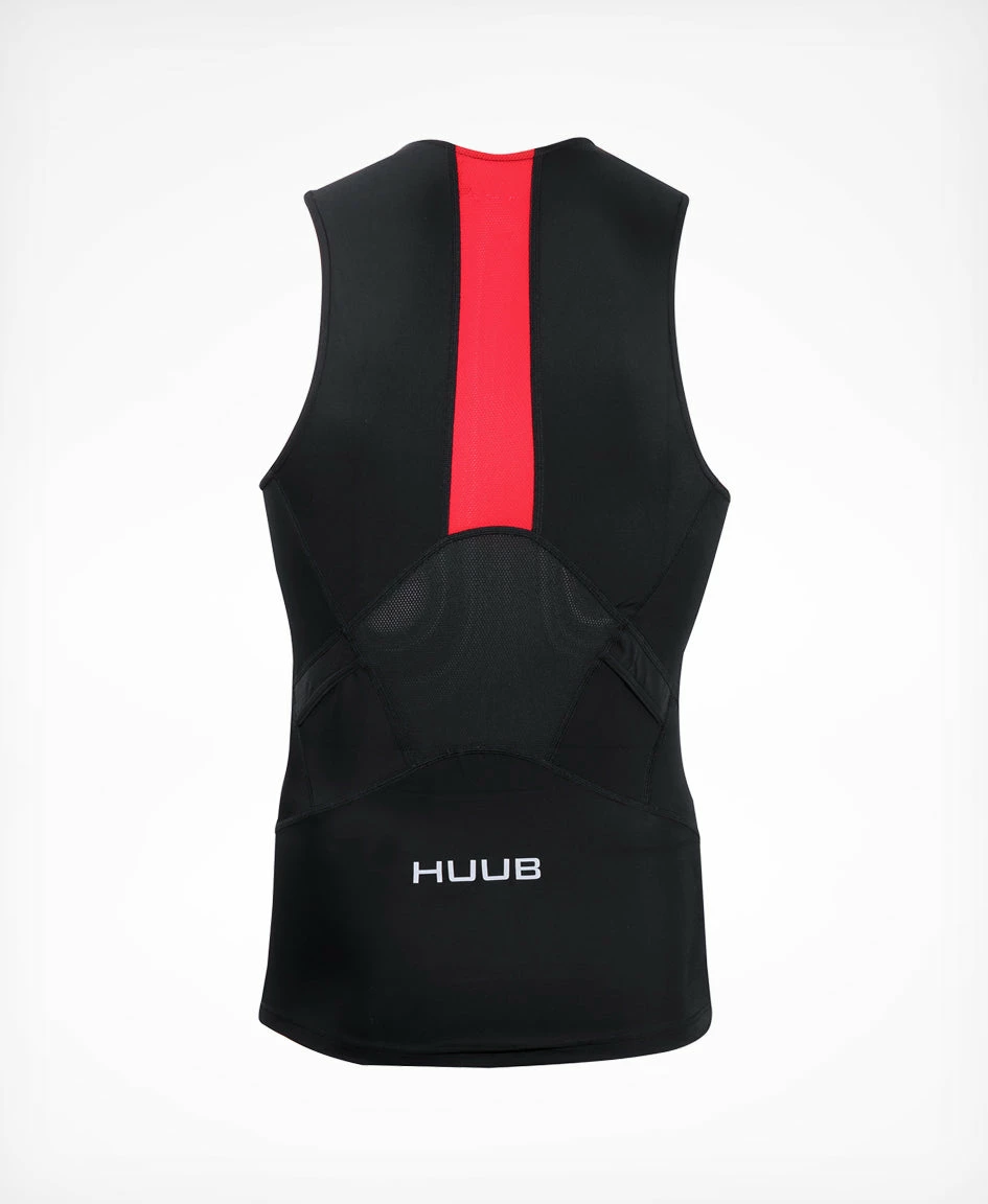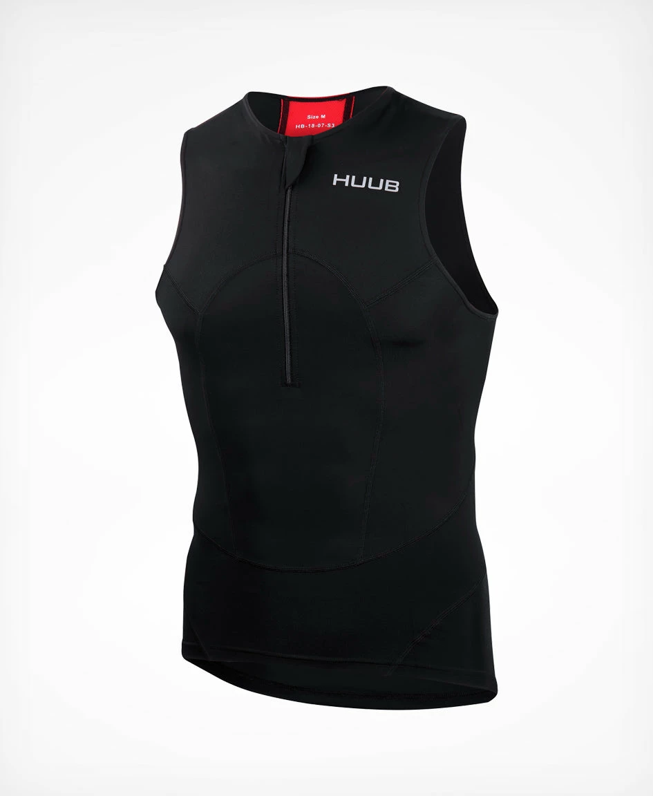 The HUUB Essential Tri Top is lightweight, comfortable and a great aerodynamic shape. The perfect partner for the Essential Tri Shorts. Nylon Lycra Front zipper Mesh centre back panel Rear pockets The broad shoulder straps help to relieve pressure on your body and the front zip provides a great opening for heat loss and a comfortable fit. Mesh panels on the back of the suit allow you to stay cool, with two easy access pockets for your race essentials. Â