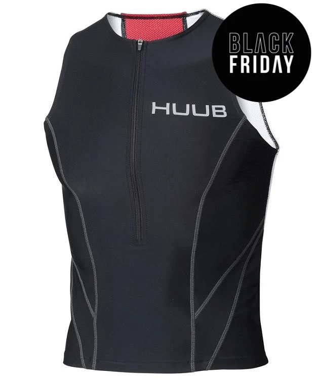 The HUUB Essential Tri Top is lightweight, comfortable and a great aerodynamic shape. The perfect partner for the Essential Tri Shorts. The broad shoulder straps help to relieve pressure on your body and the front zip provides a great opening for heat loss and a comfortable fit. Mesh panels on the back of the suit allow you to stay cool, with two easy access pockets for your race essentials. Nylon Lycra Front zipper Mesh centre back panel Rear pockets