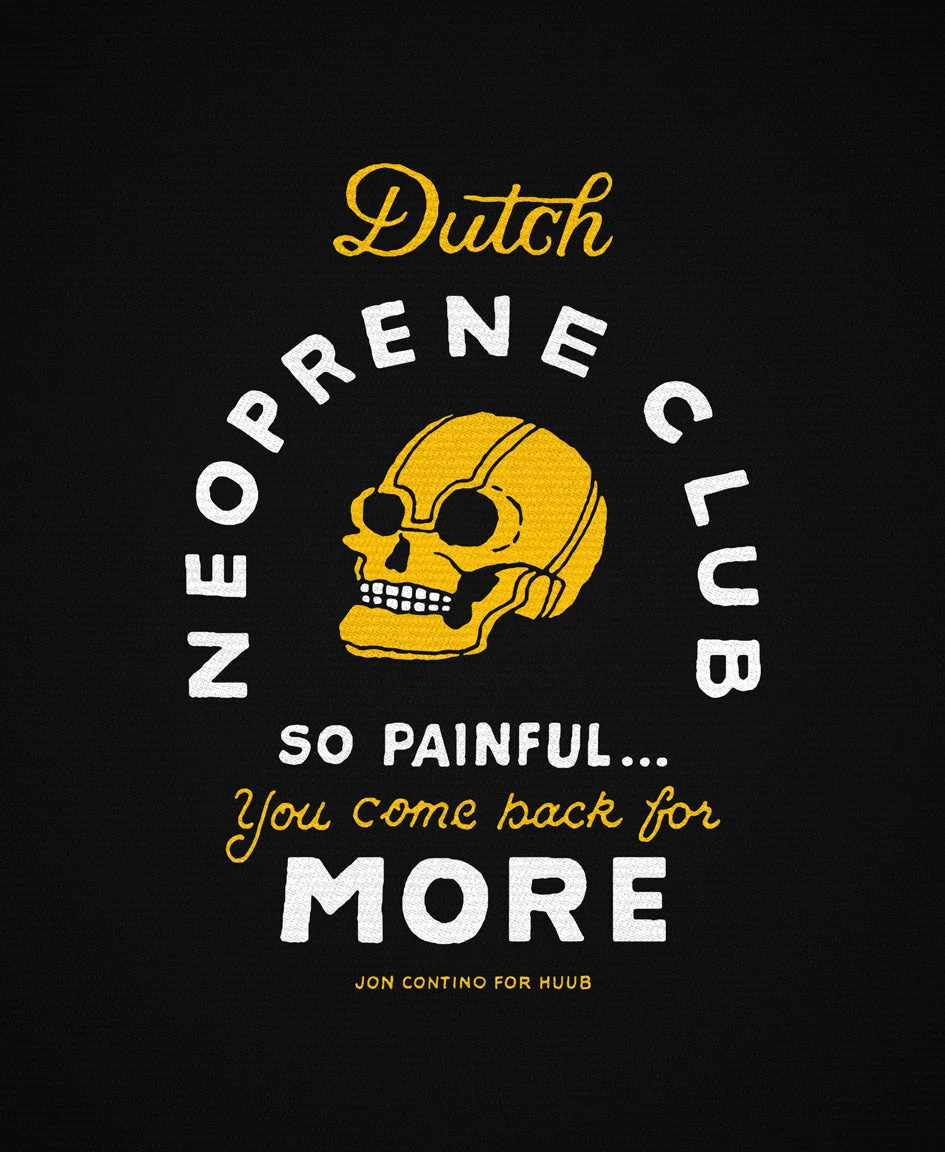 Jon Contino Dutch Neoprene Club T-Shirt Limited Edition Designed exclusively for HUUB by NYC artist Jon Contino back in 2016, we thought these casual T-Shirts featuring bold triathlon themed designs were classics we needed to rerelease. Features Set-in sleeve 1×1 rib at neck collar Inside back neck tape in self fabric Sleeve hem and bottom hem with wide double needle topstitch 100% Organic Ring-Spun combed Cotton Our original brief was a T-Shirt line with character, one that possessed an artists personality from outside our industry. Jon Contino’s designs are pretty hotly sought after, so we were thrilled when he kindly accepted our commission for a series of prints that give a little extra flavour to HUUB and our sport of triathlon. Warranty Information