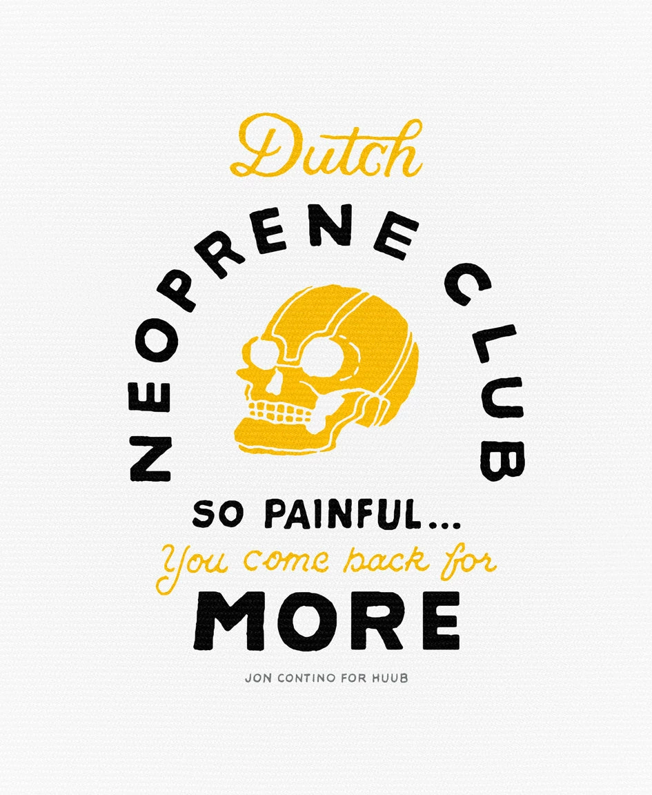 Jon Contino Dutch Neoprene Club T-Shirt Limited Edition Designed exclusively for HUUB by NYC artist Jon Contino back in 2016, we thought these casual T-Shirts featuring bold triathlon themed designs were classics we needed to rerelease. Features Set-in sleeve 1×1 rib at neck collar Inside back neck tape in self fabric Sleeve hem and bottom hem with wide double needle topstitch 100% Organic Ring-Spun combed Cotton Our original brief was a T-Shirt line with character, one that possessed an artists personality from outside our industry. Jon Contino’s designs are pretty hotly sought after, so we were thrilled when he kindly accepted our commission for a series of prints that give a little extra flavour to HUUB and our sport of triathlon.