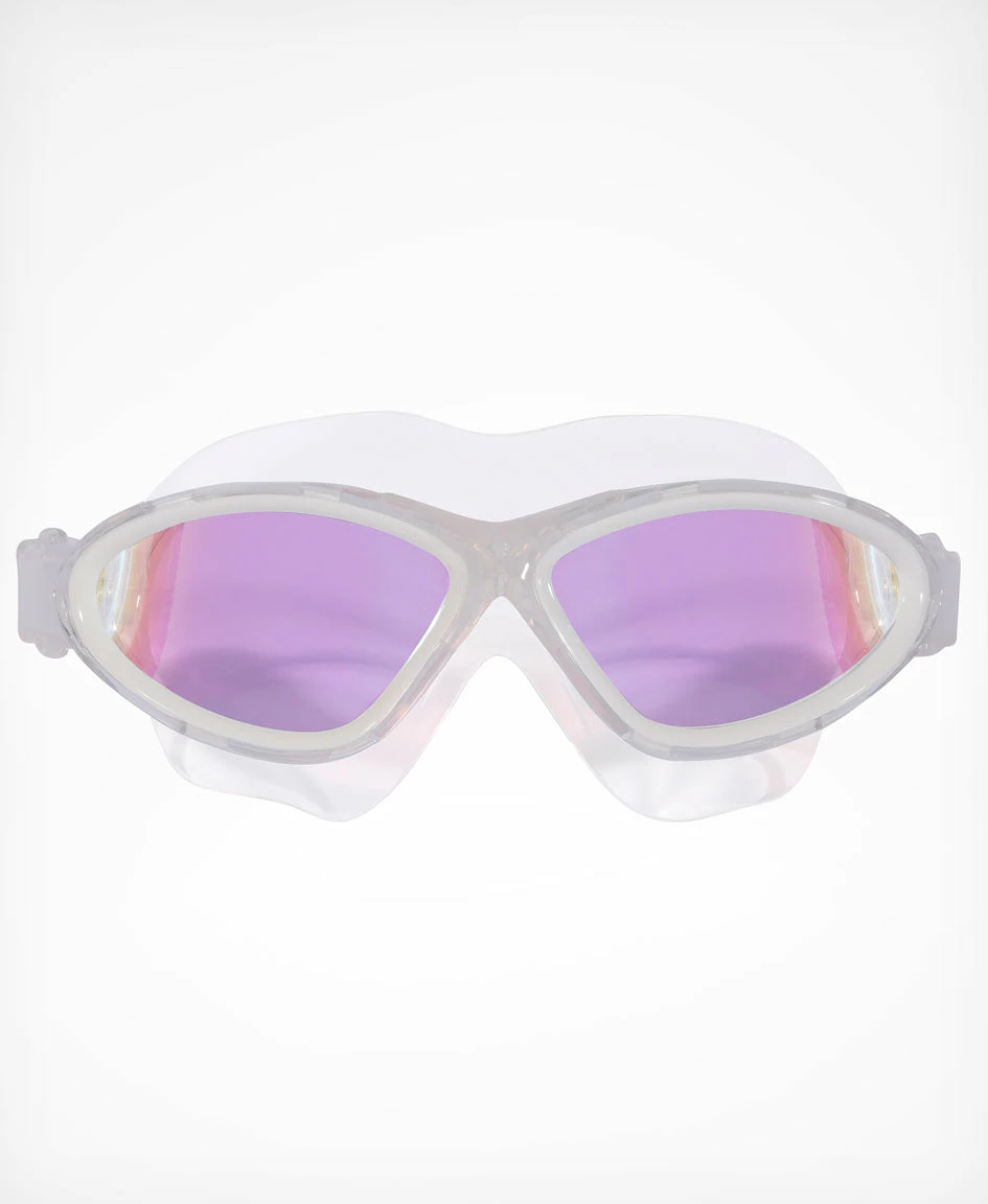 The mask for open water swim training and recreational swimmers looking for eye protection in a supremely comfortable face goggle. Increased visibility and clarity thanks to the larger lenses. Hypoallergenic silicone external gaskets offer a feather thin fit to completely seal the face for those leisurely or quicker paced training swims. The wider fit gasket, which is external to the lens, ensures a more comfortable, lower pressure, leak free fit. Easily adjustable to fit all faces and contours with anti-fog treatment for all-day visibility. Available in a photochromatic lens for all-day shade adjustment, the lens darkens or lightens with the changing light.Comes in 3 lens options: Mirrored Smoke lens for sunny days. Clear lens for overcast days. Photochromatic lens for all conditions. Features: Hypoallergenic silicone gaskets Huge peripheral vision Quick adjust adjustment technology UVA/UVB polycarbonate lenses Anti-fog coating Low profile design Warranty Information