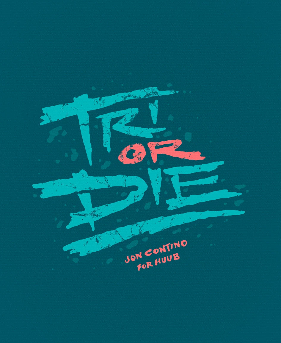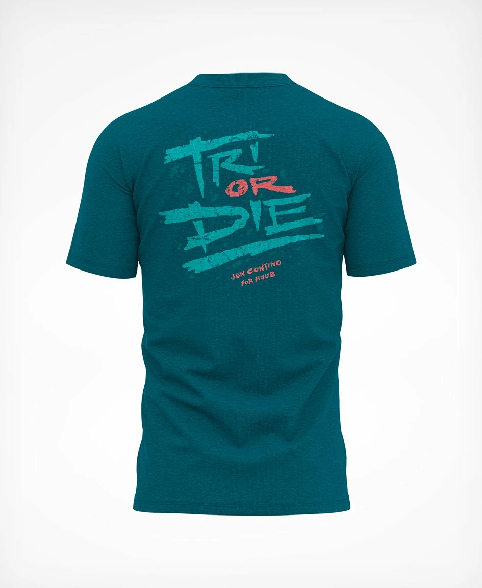 Jon Contino Tri Or Die T-Shirt Limited Edition Designed exclusively for HUUB by NYC artist Jon Contino back in 2016, we thought these casual T-Shirts featuring bold triathlon themed designs were classics we needed to rerelease. Features Set-in sleeve 1×1 rib at neck collar Inside back neck tape in self fabric Sleeve hem and bottom hem with wide double needle topstitch 100% Organic Ring-Spun combed Cotton Our original brief was a T-Shirt line with character, one that possessed an artists personality from outside our industry. Jon Contino’s designs are pretty hotly sought after, so we were thrilled when he kindly accepted our commission for a series of prints that give a little extra flavour to HUUB and our sport of triathlon.