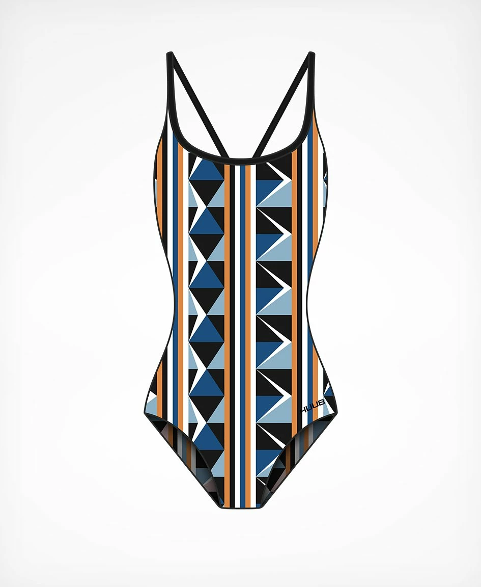 The HUUB Brownlee Swim Training Costume for women features Jonny Brownlee’s eye-catching print, taken from the Brownlee Brief designed by the podium brothers themselves. High performance, chlorine resistant fabric. Fully lined. Spaghetti straps.