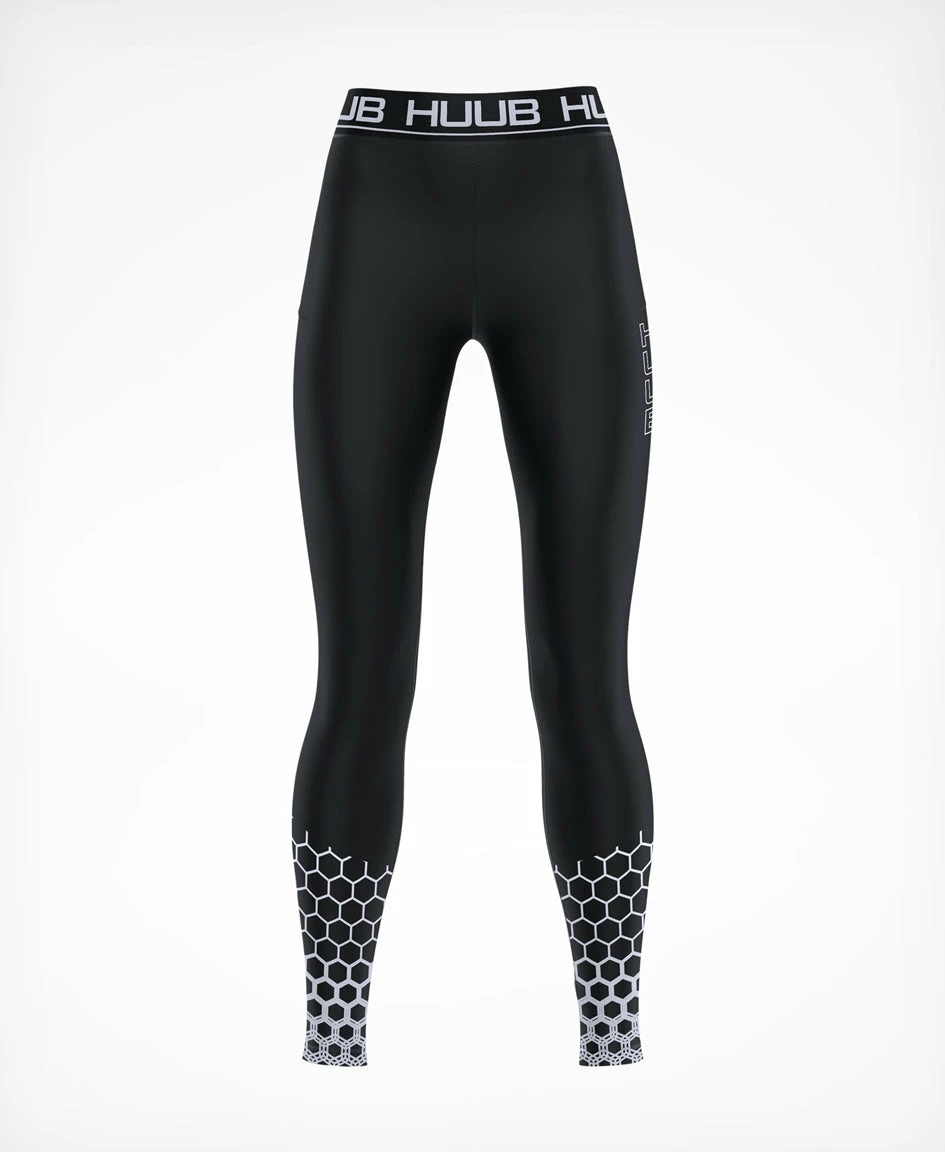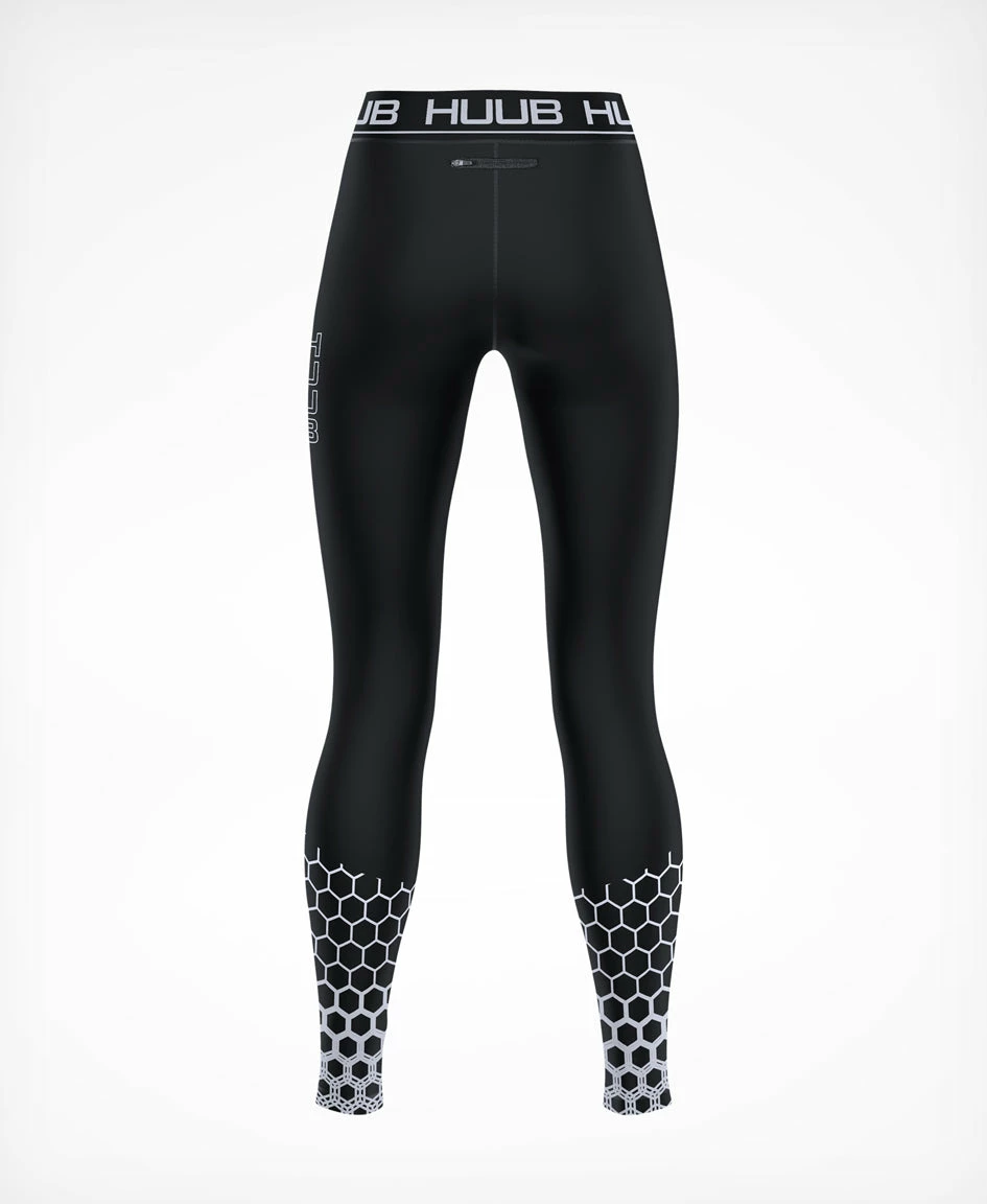 Compression Compression garments are essential in the world of performance, it’s use during exercise can help with muscular function, whilst post activity can aid and promote recovery. During exercise it has been shown that compression can improve athletic efficiency through increased proprioception and feel for what muscle groups are doing. Active compression stimulates greater blood supply to muscles meaning the supply of oxygen to muscles is improved. Compression can also reduce muscle spasms and micro tears caused by exercise. Post activity, increased blood flow from structured compression promotes the removal of ‘waste’ bi-products and can speed up recovery, this also reduces the inflammatory response and reduces muscle stiffness and soreness allowing you to get back to training sooner. Huub Compression Tights The ideal garment to wear during exercise, this can be used for training, warm up and competition to promote performance. Reflective print allows you to be seen in all conditions, adding an element of safety when getting winter miles in. A lockable rear zip allows you to store essential items whilst training. The fabrics provide a soft yet compressive fit and actively wicks away sweat and moisture to keep you cool and dry, assisting in body temperature regulation. Comfort is enhanced with a deep 5cm waist band for pressure distribution, combined with flatlock stretch seams to allow a shaped fit.