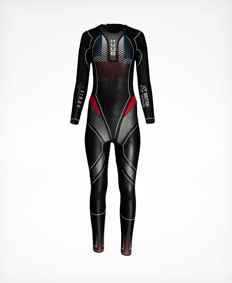 The Ex-Demo wetsuit grading from A to C is based on the aesthetic standard of the wetsuit. It will not affect its actual performance. Ex-Demo products have a 30 day warranty. Grade A1 – Like a new wetsuit. May arrive without original packaging. Grade A – Almost as good as new. Some may have been used for sizing purposes and may or may not still have the labels attached. Grade B- Very good condition. These wetsuits will have been used more frequently for sizing than grade A. Will have some fingernail marks or some fading of printing in certain areas. You may get a used ex-rental or pre-owned wetsuit. Some patch repairs may have been made to these suits, all carried out by our specially selected company based here in the UK. Grade C- You may get a used ex-rental or pre-owned wetsuit. Some larger patch repairs or panel replacements (these could be in a different colour neoprene to the rest of the suit) may have been made to these suits, all carried out by our specially selected company based here in the UK. There may be some fingernail marks from fitting or the printing may show signs of fading or peeling. None of this affects performance in any way. Please note that discount codes are not valid for purchases of any Ex-Demo products. ___ British Triathlon Aegis X Wetsuit Aegis X is a facelift of the wetsuit renowned for exceeding expectations, delivering so much more than the price would suggest. The latest version of this suit has many features only previously found in our record-breaking, high-end suits and a price/performance match unseen anywhere. HUUB’s exclusive X-O Skeleton™ for exceptional body alignment and stroke efficiency Superior panel patterns for Rotational Freedom™ and ease of stroke Select neoprene panels and linings to optimise materials modulus Breakaway Zipper™ delivering the fastest transition Exclusive HUUB 3:3 buoyancy Improved materials for 2022 The great upper body flexibility and added lower leg buoyancy appeals to both the triathlete and open water swimmer, delivering the perfect balance of comfort and performance. Neoprene 80%, Polymide (Nylon) 15%, Metalised Fibre 3%, Cotton 2% What should a good fitting wetsuit look like? Choose a size below to see how it should look: Mens Size: S – SMT – M – MT – ML – XL – SS Womens Size: S – M – ML – SS Warranty Information